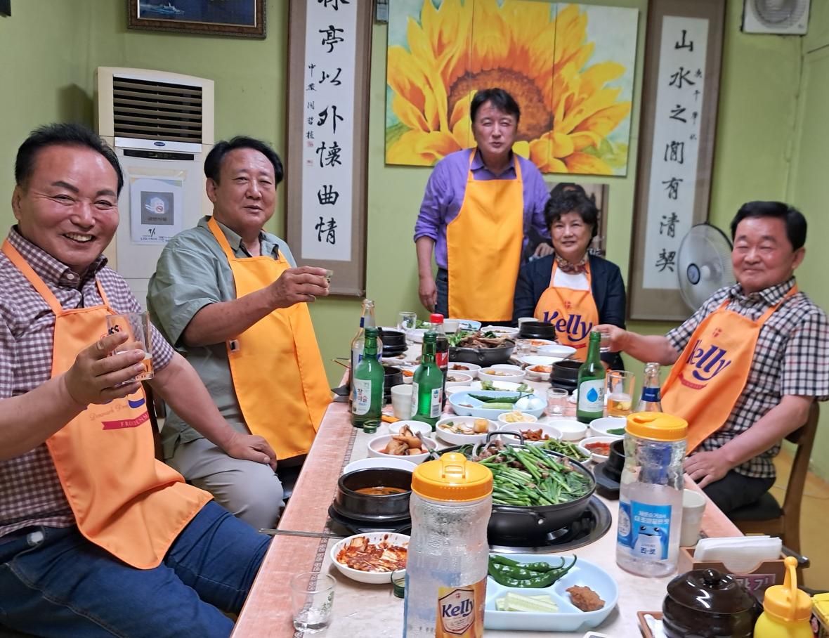 식당 주인이 찍은 사진에는 김 지사와 김 의장 등 참석자들의 모습이 보이며, 김 의장과 이 의원, 정 의원은 술잔을 들었습니다.