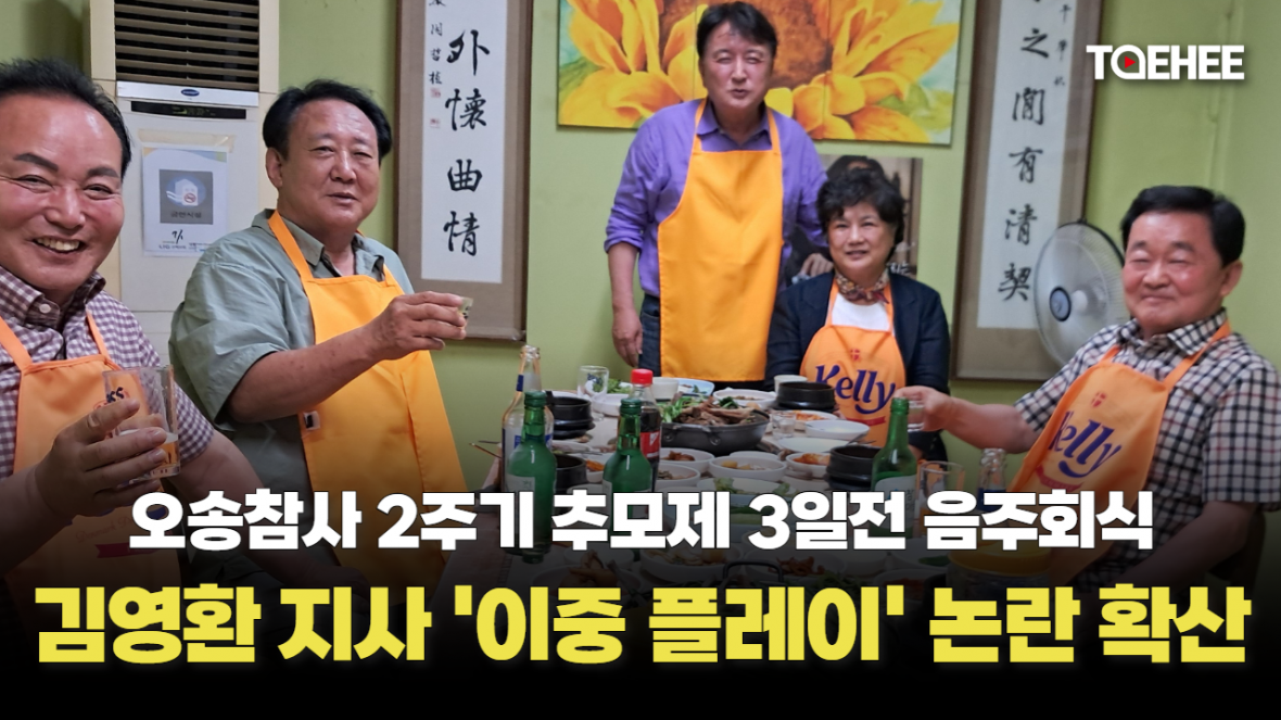 김영환 충북지사가 직원들에게는 오송참사 2주기 추모기간에 음주회식을 자제하라고 지시해놓고, 정작 자신은 지방의원들과 술자리를 한 사실이 드러나 빈축을 사고 있습니다.