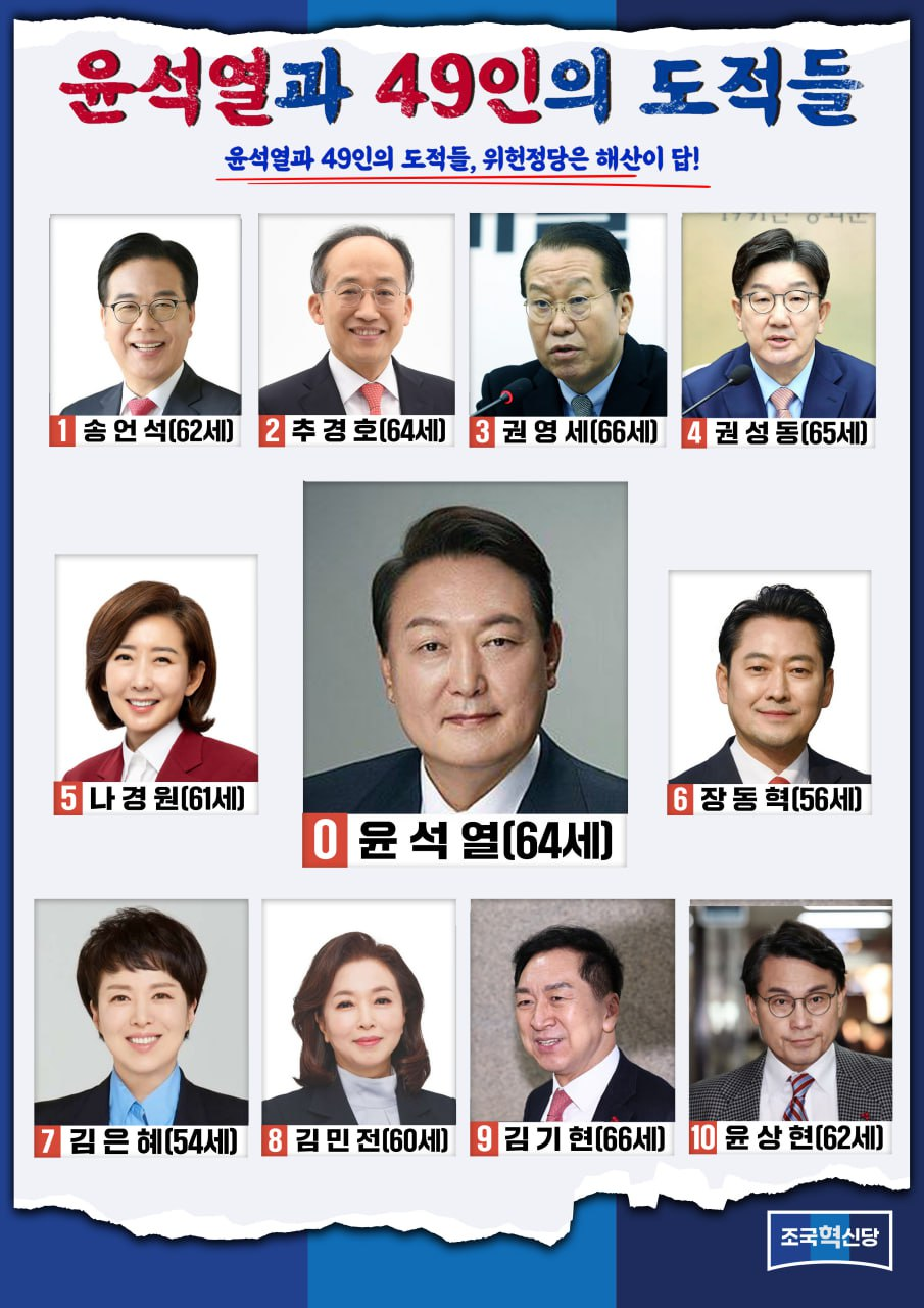조국혁신당이 지명한 '윤석열과 49인의 도적들'