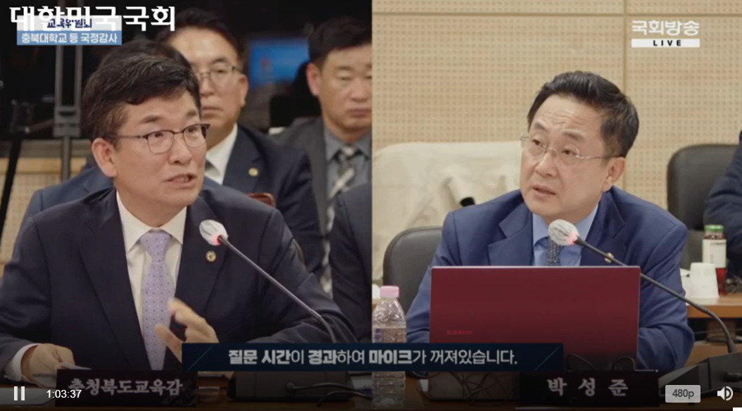 23일 국회 교육위원회의 충북교육청 등에 대한 국정감사에서 윤 교육감은 민주당 문정복 의원의 질의에 대해 “식사비는 (식사)중간에 거기까지만 식대를 35만원 정도 냈다”고 말했습니다.