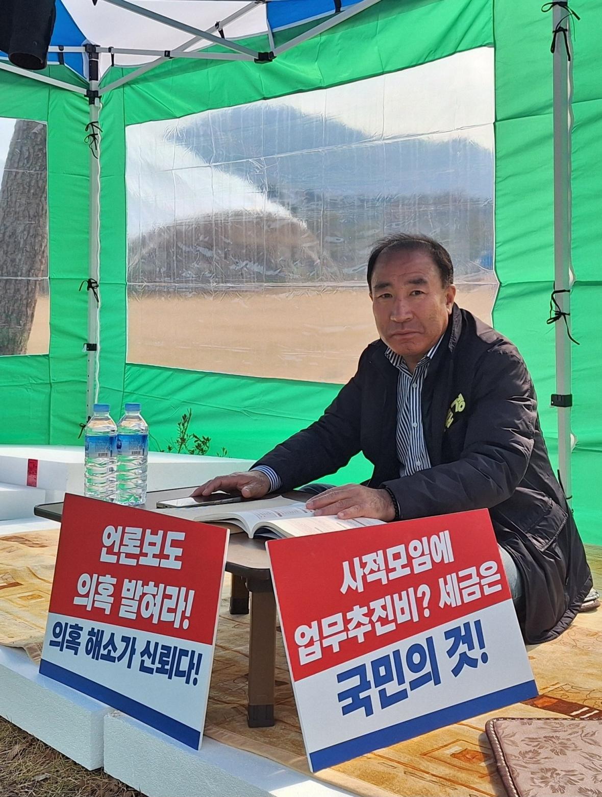26일 송인헌 괴산군수의 법인카드 불법 사용의혹에 대한 명확한 해명을 촉구하면서 단식농성을 시작한 이준경 전 음성부군수./이준경 페이스북