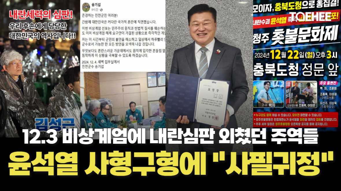 12.3 비상계엄선포 당일 밤에 충북지역 지방자치단체장 가운데 유일하게 계엄철회를 요구했던 송기섭 진천군수는 “당연한 결과이고, 앞으로도 초헌법적인 사태가 다시는 발생하지 않도록 이번에 발본색원해야 한다"고 강조했습니다.