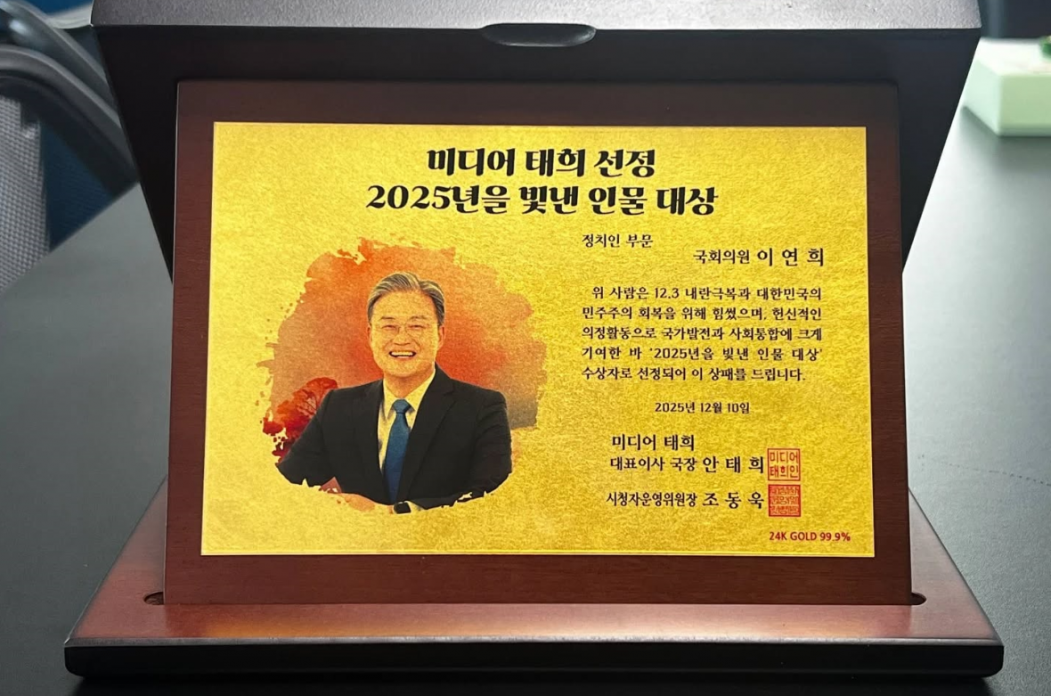 미디어태희 선정 '2025년을 빛낸 인물' 상패