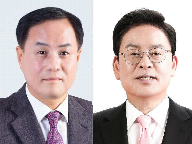 김완식 청주시의원(왼쪽)·정우택 전 국회의원