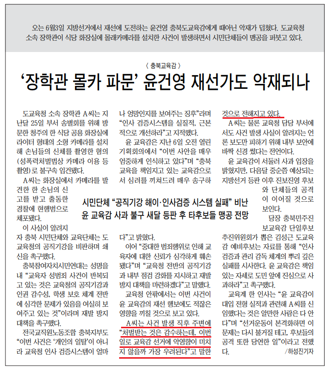‘몰카 장학관'과 윤건영 교육감 관계는?