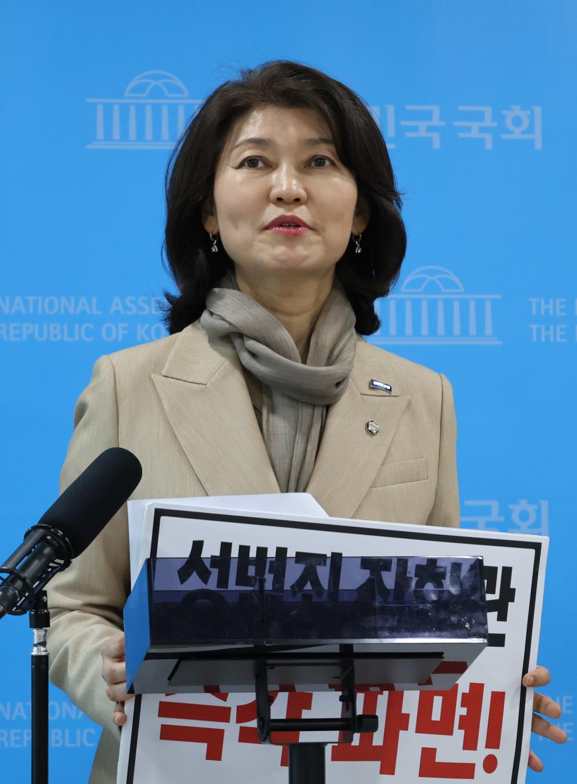 기자회견을 하고 있는 강경숙 국회의원