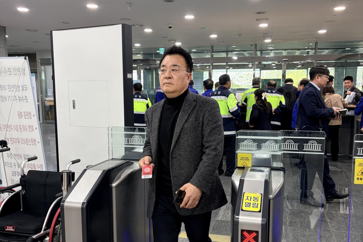 7일 서승우 국민의힘 청주시장 예비후보가 박덕흠 공관위원장을 항의방문하기 위해 국회에 들어서고 있다./서승우 예비후보 제공