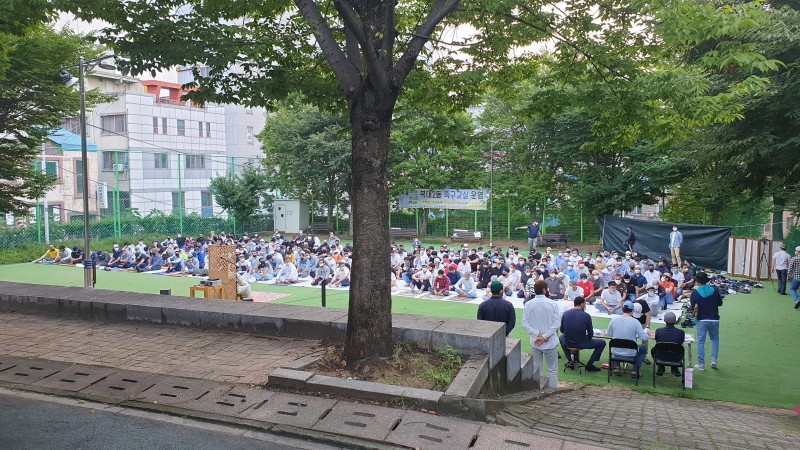 지난 달 31일 청주 신율봉공원에서 열린 이슬람종교집회 모습./블로그 캡쳐