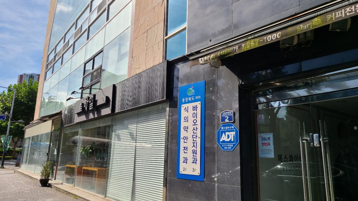 충북도 식의약안전과와 바이오산단지원과가 입주한 건물. 신성장동력국과는 달리 입구에 간판만 달려 있다./소셜미디어태희