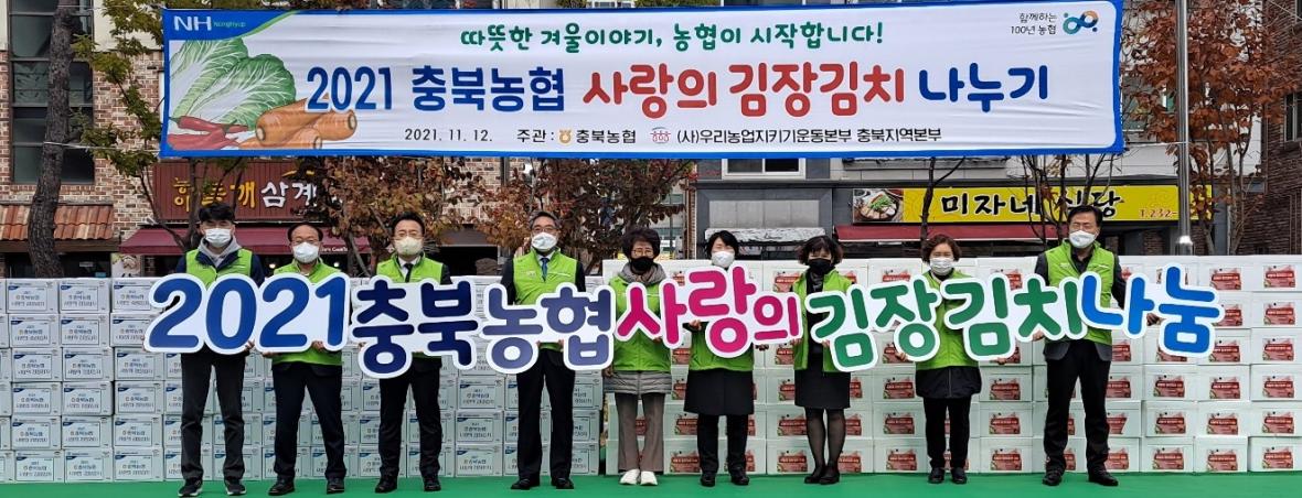 이날 준비한 김치는 총 16톤에 1600상자(상자당 10kg)상당이며, 충북농협이 1200상자, 농협 임직원들의 사회공헌단체인 (사)우리농업지키기운동본부가 400상자를 지원했다.