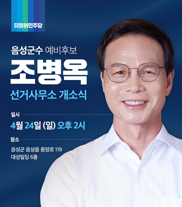 한편, 조 예비후보의 선거사무소 개소식은 오는 24일 오후2시 음성군 음성읍 대성빌딩 6층에서 열린다.