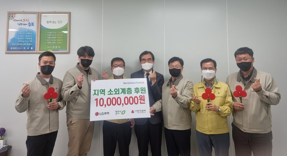 LG화학 청주공장(주재임원 최종완 상무)은 지난 21일 청주시청을 방문해 지역 내 소외계층 지원을 위해 써달라며 성금 1000만 원을 기탁했다.
