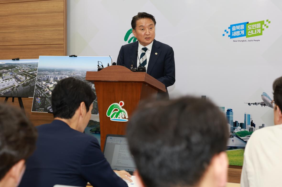 1일 김영환 지사가 충북도청 브리핑룸에서 오송 K-바이오 스퀘어 조성계획을 발표하고 있다./충북도 제공