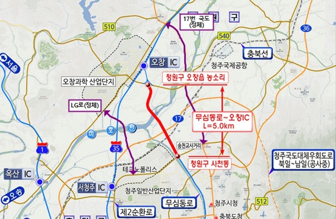 아울러 공용 중인 국도 17호선(성모병원~오창), 엘지로와 함께 청주시 남북지역의 연결성을 한층 강화하고, 3순환로와의 완전 입체교차 연결을 통해 북부지역의 만성 교통 지ㆍ정체 해소에 획기적인 역할을 할 것으로 기대된다.