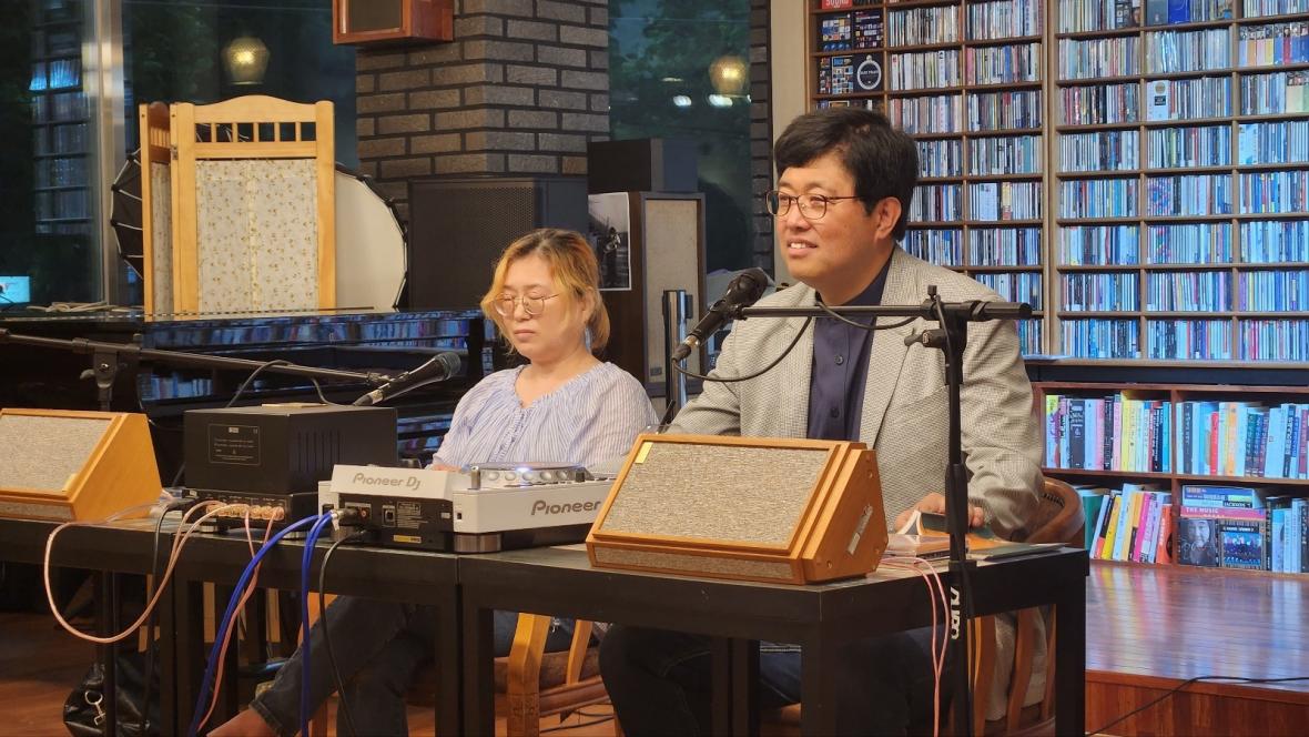 이양일 팝칼럼니스트(왼쪽)가 이상조 의원의 에세이에 대해 말하고 있다.