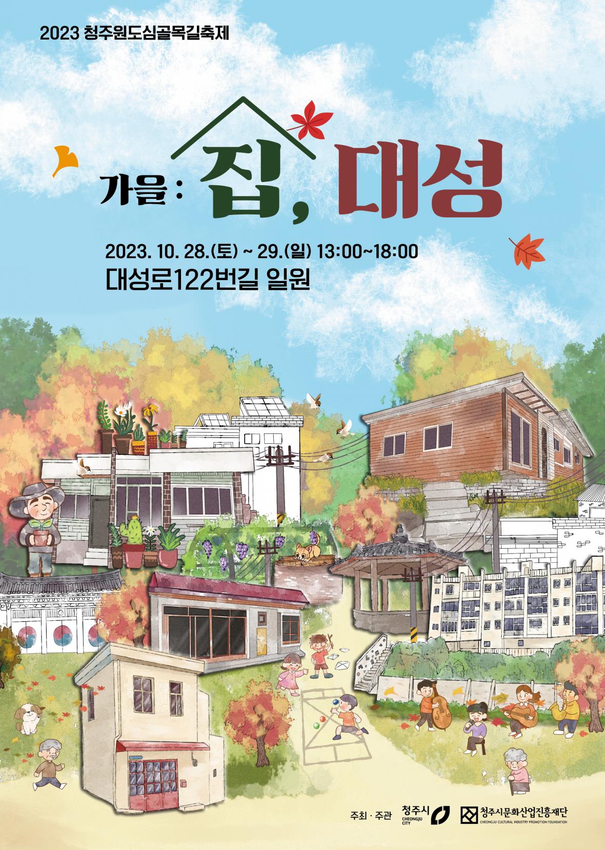 청주원도심골목길축제인 ‘가을:집,대성’축제가 28일과 29일 이틀간 오후 1시~6시에 상당구 대성동 122번길 일원에서 열린다.