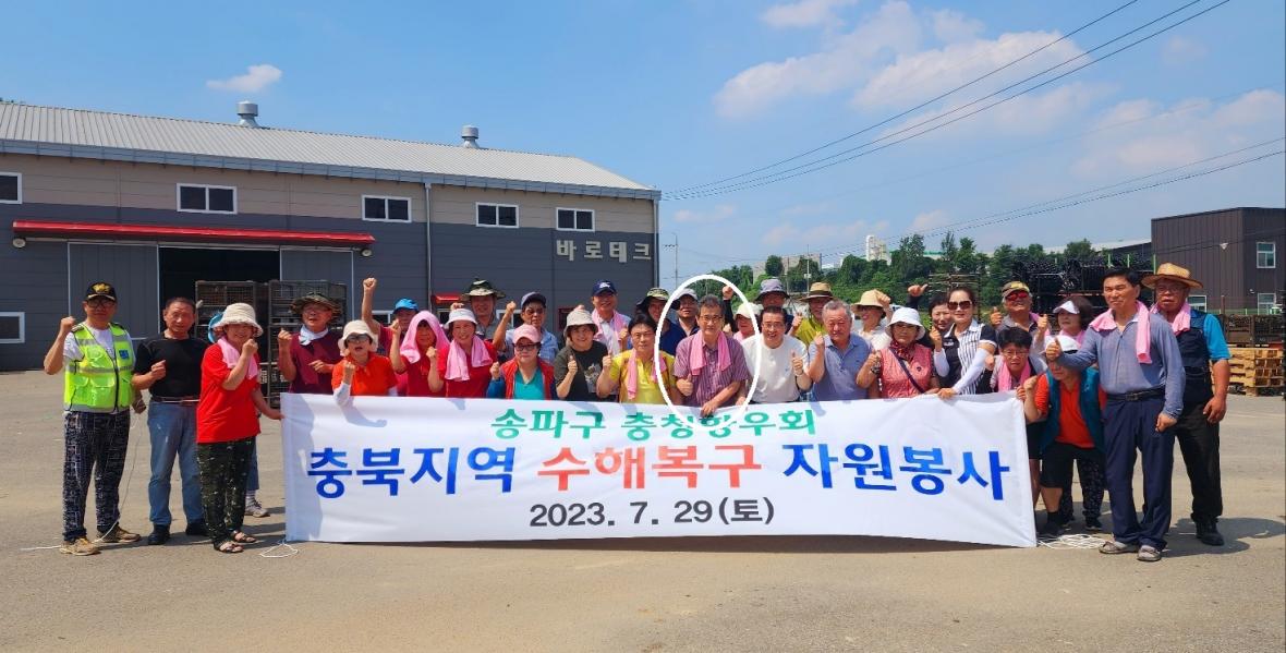 지난 7월 31일 청주에서 수해복구 활동을 한 이시종 전 지사(흰색 원안).