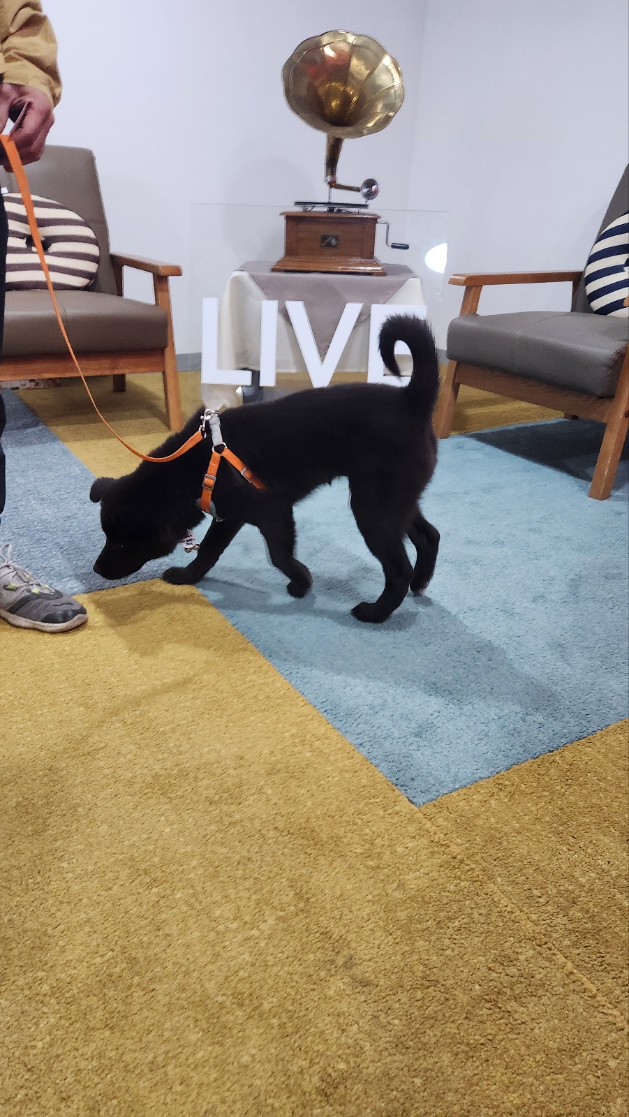 소셜미디어 태희 스튜디오의 첫 반려동물 손님 '딱지'./소셜미디어 태희