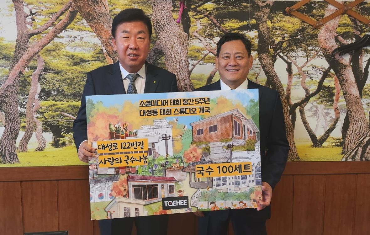 소셜미디어 태희는 지난 주에 대성동행정복지센터에 이 지역 어르신 가구에게 국수를 전달했으며, 대성동에서 배부했다.