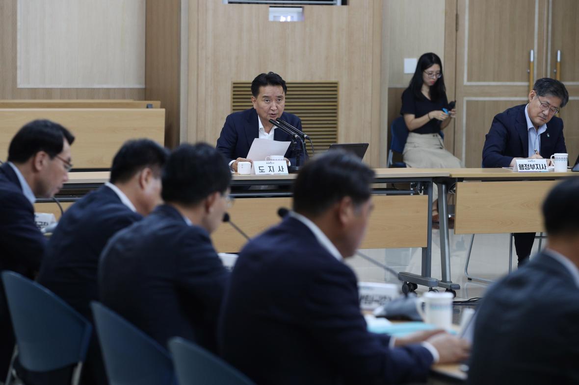 김영환 지사가 12일 충북도에서 열린 확대간부회의에서 발언하고 있다. /충북도 제공