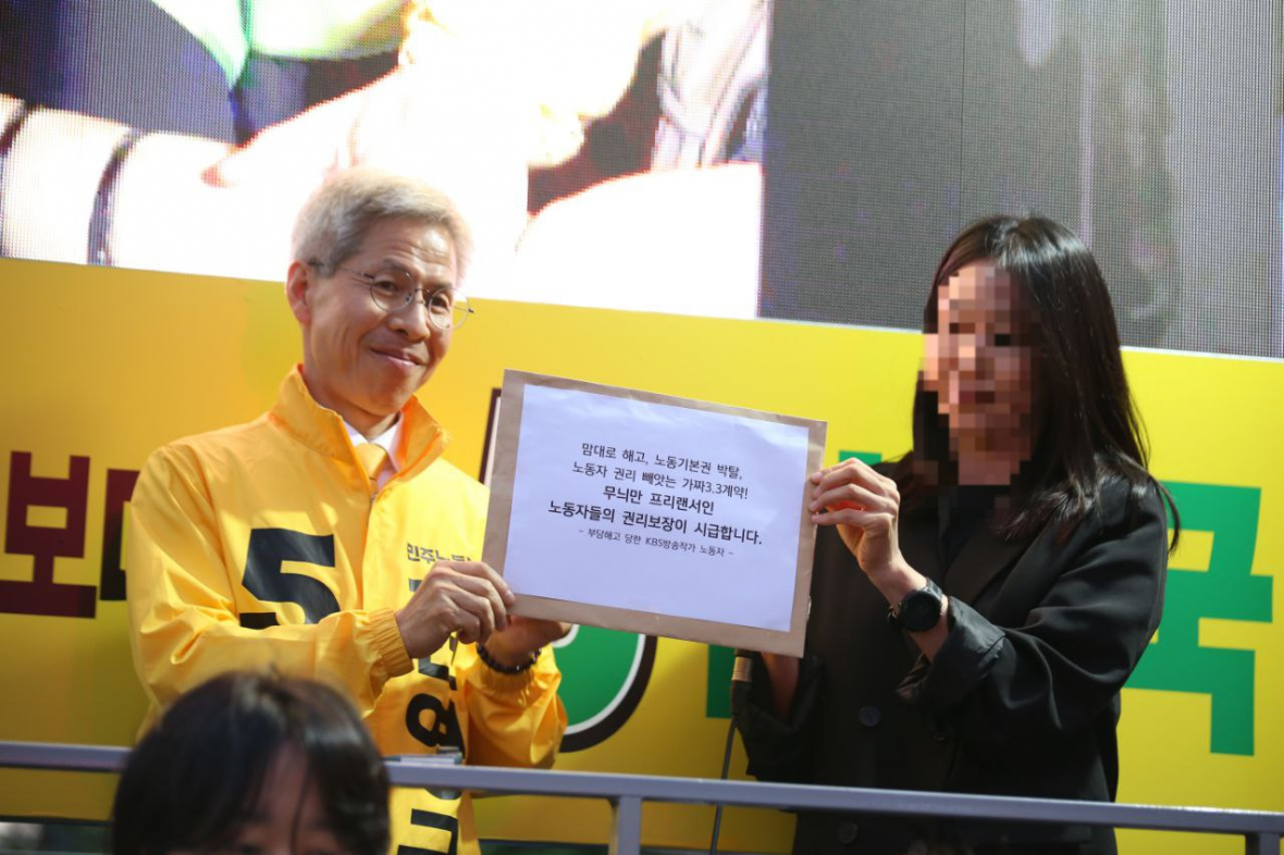 KBS청주방송총국에서 해고된 작가가 권영국 민주노동당 대통령후보를 만났습니다.