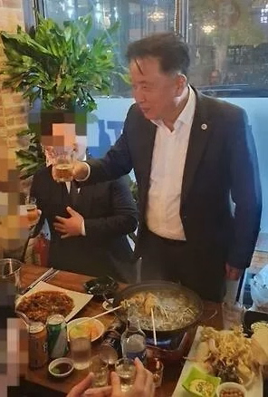 식당 주인이 찍은 사진에는 김 지사와 김 의장 등 참석자들의 모습이 보이며, 김 의장과 이 의원, 정 의원은 술잔을 들었습니다.