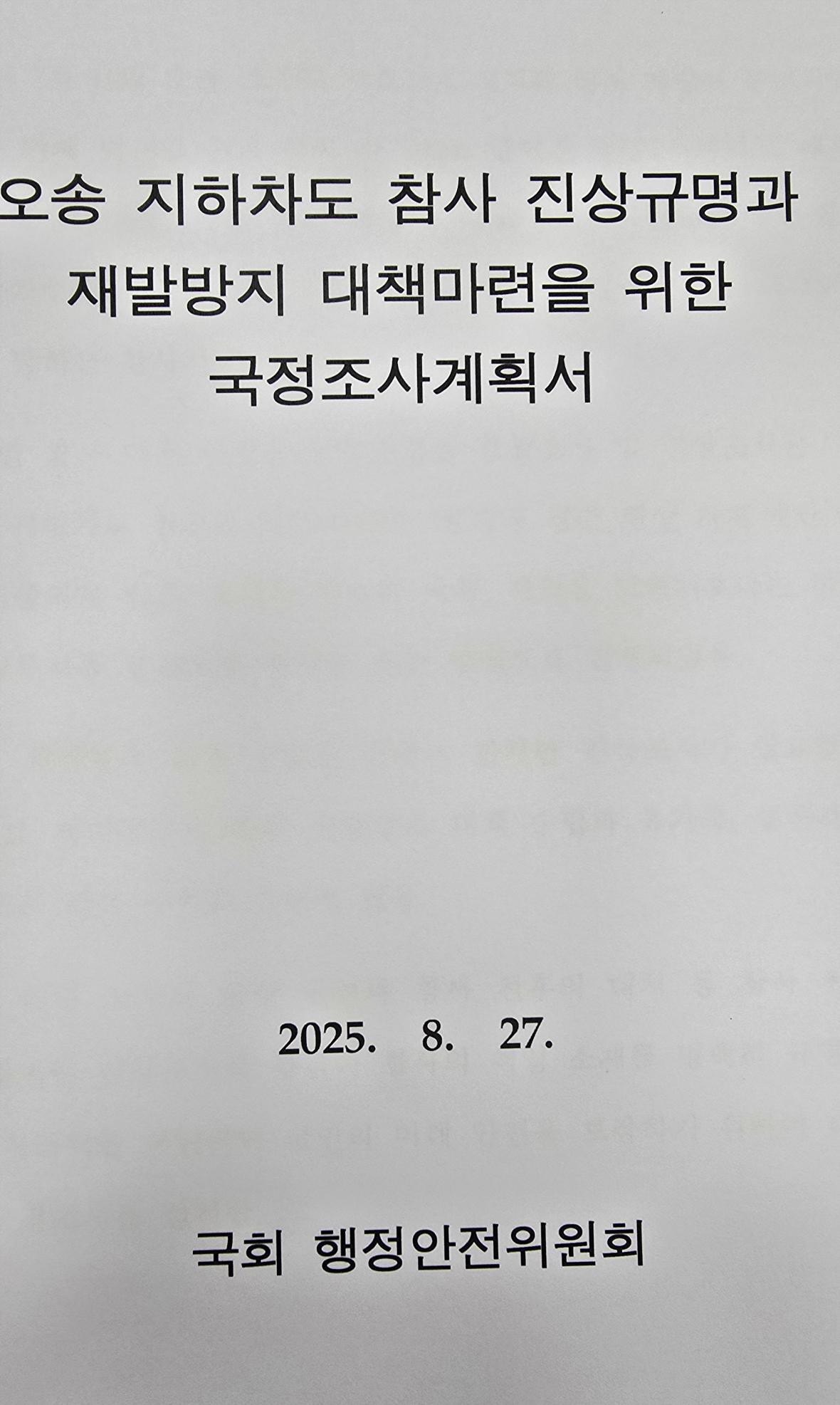 이날 <미디어태희>는 국회 행정안전위원회의 ‘오송 지하차도 참사 진상규명과 재발방지 대책마련을 위한 국정조사계획서’를 입수했습니다.