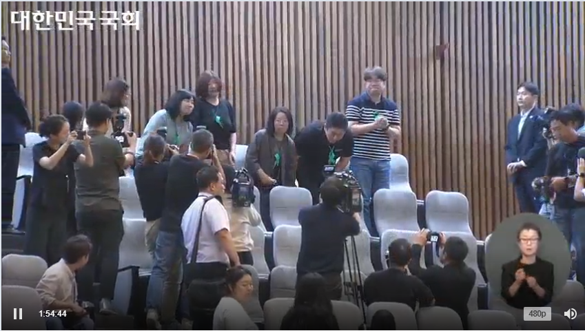 오송참사 국정조사 실시계획서가 의결된 뒤 오송참사시민대책위 관계자들이 인사를 하고 있다./국회 영상시스템 캡쳐