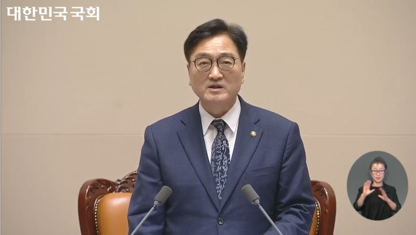 우원식 국회의장이 27일 국회 본회의에서 오송참사 국정조사 실시계획서가 가결된 이후 발언하고 있다./국회 영상시스템