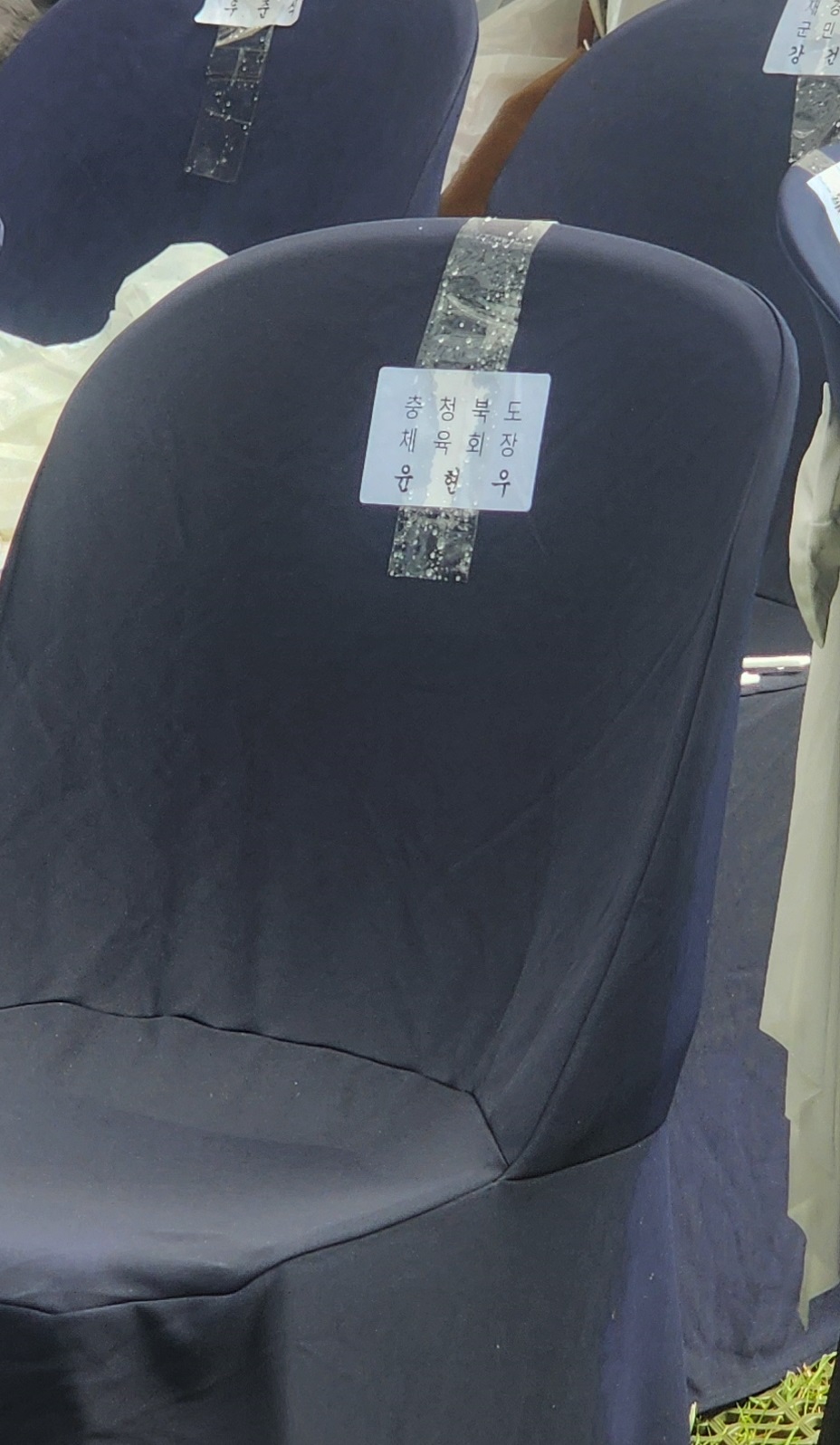 1일 오후 2시 충북도의회에서 열린 신청사 개청식에 놓여있는 윤현우 회장 좌석