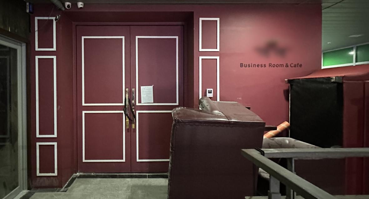 이 업소 입구에는 상호와 ‘Business Room & Cafe’라는 글귀가 부착돼 있습니다.