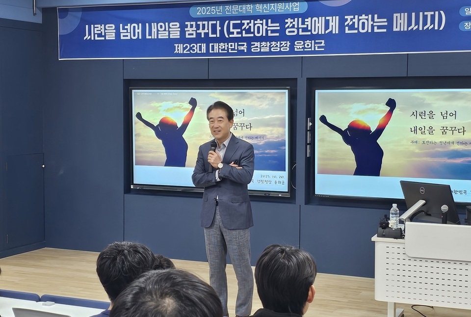 윤 전 청장은 최근 충청대학에서 대학생들을 대상으로‘시련을 넘어 내일을 꿈꾸다’를 주제로 특강을 한 바 있습니다.