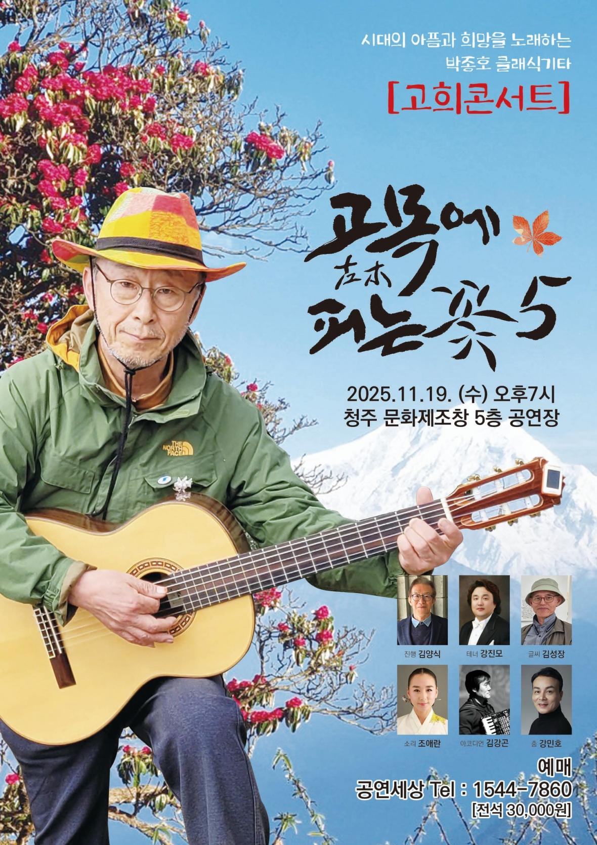 교사 출신 기타리스트 박종호씨의 고희콘서트 ‘고목에 피는 꽃5’가 오는 19일 오후 7시 청주 문화제조창 5층 공연장에서 열립니다.