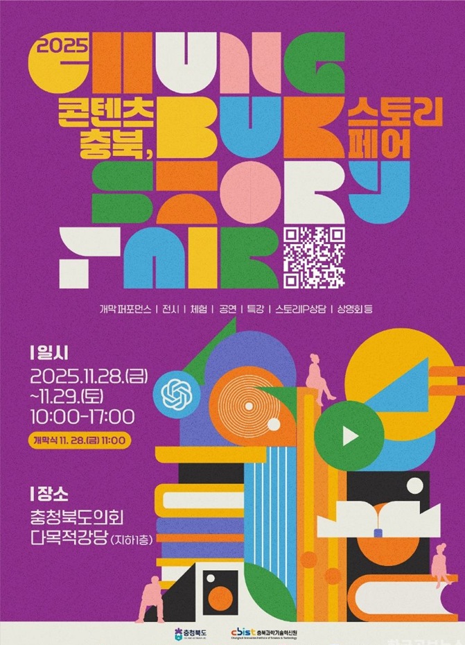 또한 28일부터 29일까지는 충북도의회 지하강당에서 ‘2025 충북 스토리페어’를 개최하는 등 AI와 콘텐츠 분야에서 두각을 나타내고 있습니다.