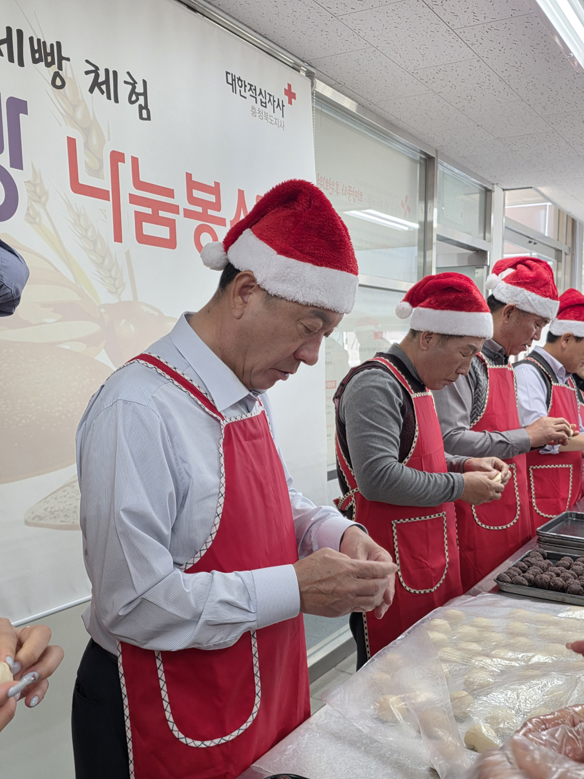 참석자들은 산타 모자를 쓰고 직접 빵을 만들며 훈훈한 분위기를 만들었고, 완성된 빵은 대한적십자사를 통해 지역 내 아동센터 등 도움의 손길이 필요한 이웃들에게 기부했습니다.