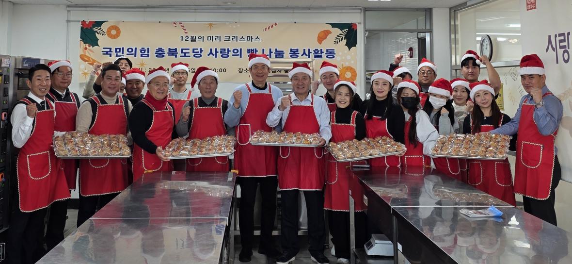 국민의힘 엄태영 충북도당 위원장이 5일 도당 주요 당직자들과 함께 제빵 봉사활동과 주요당직자회의를 했습니다.