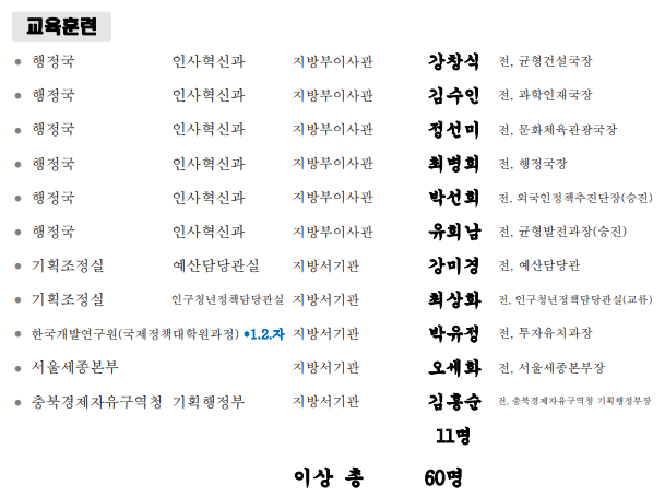 충북도 3급 공무원 6명이나 교육간다