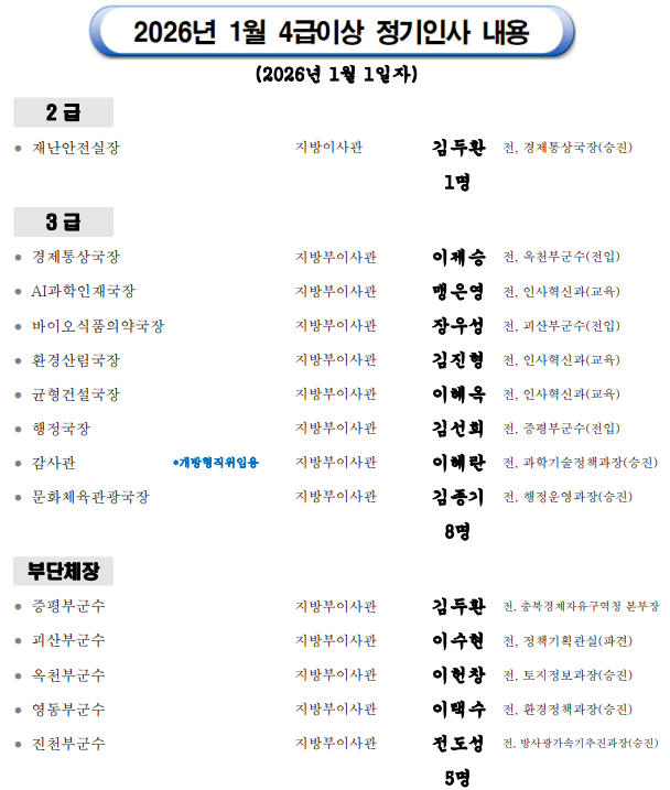 1월 1일자 4급이상 정기인사 발표, 문화체육관광국장 김종기