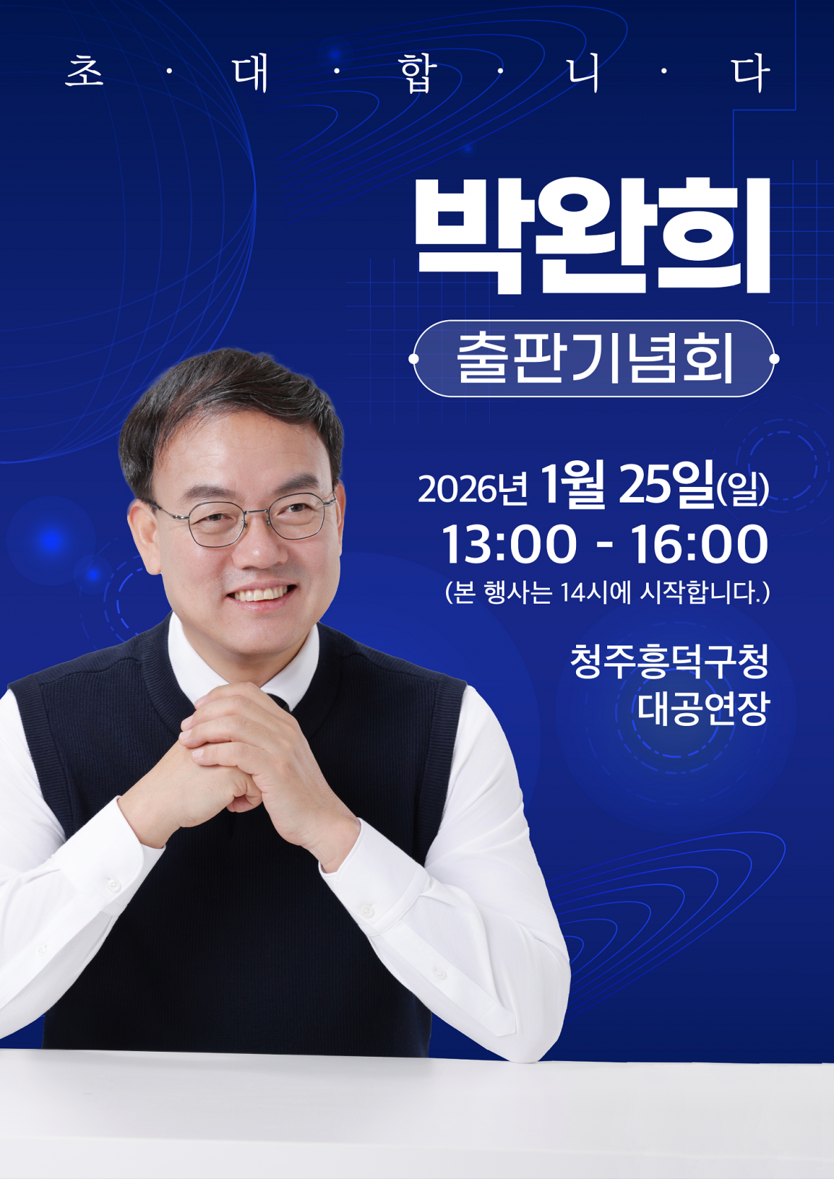 민주당 박완희 청주시의원은 25일 오후 2시 흥덕구청 대공연장에서 ‘AI 대전환 청주’ 출판기념회를 개최합니다.