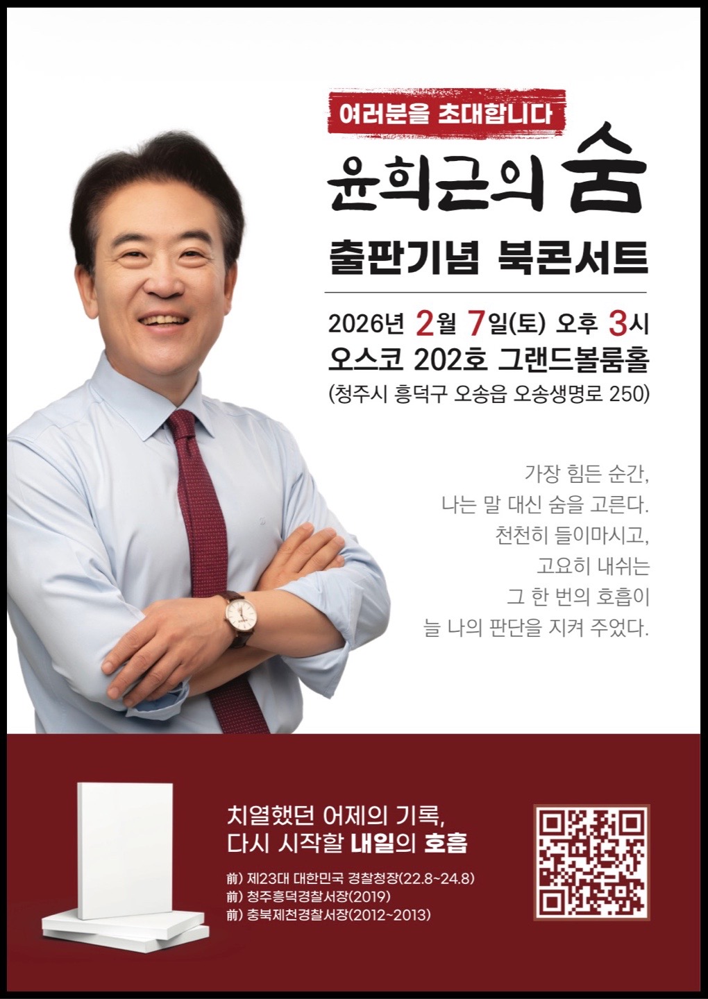 최근 국민의힘에 입당한 윤희근 전 경찰청장은 2월 7일 오후 3시 청주오스코에서 '윤희근의 숨' 출판기념 콘서트를 열 예정입니다.