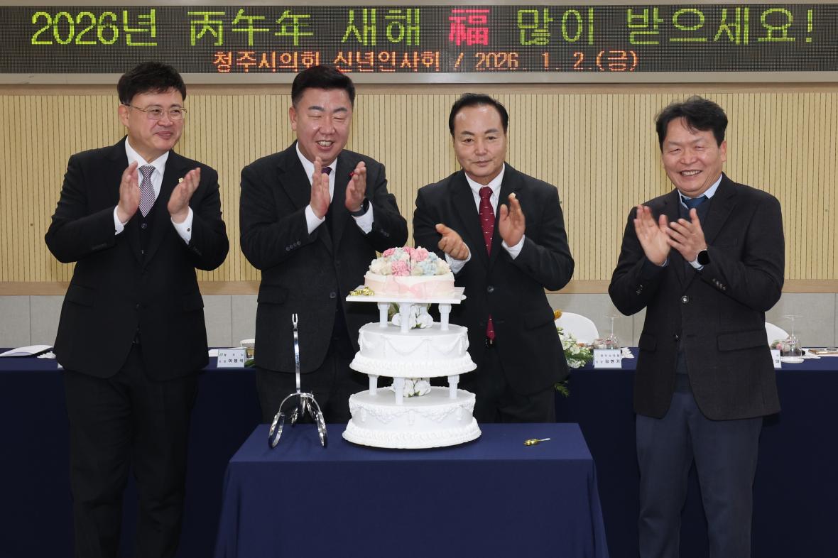 2일 열린 청주시의회 신년인사회에서 이범석 청주시장(왼쪽에서 두번째)이 박수치고 있다./청주시의회 제공
