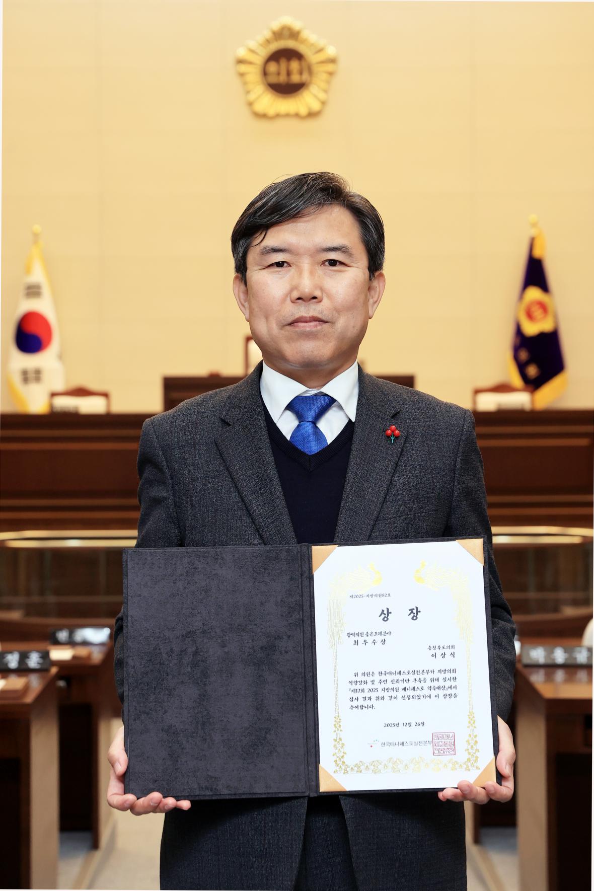 2년 연속 매니페스토 약속대상을 받은 이상식 충북도의원