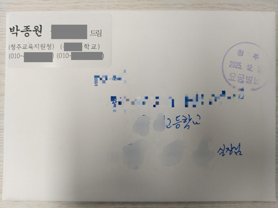 박종원 청주교육장이 보낸 아들 청첩장 우편물./독자 제공