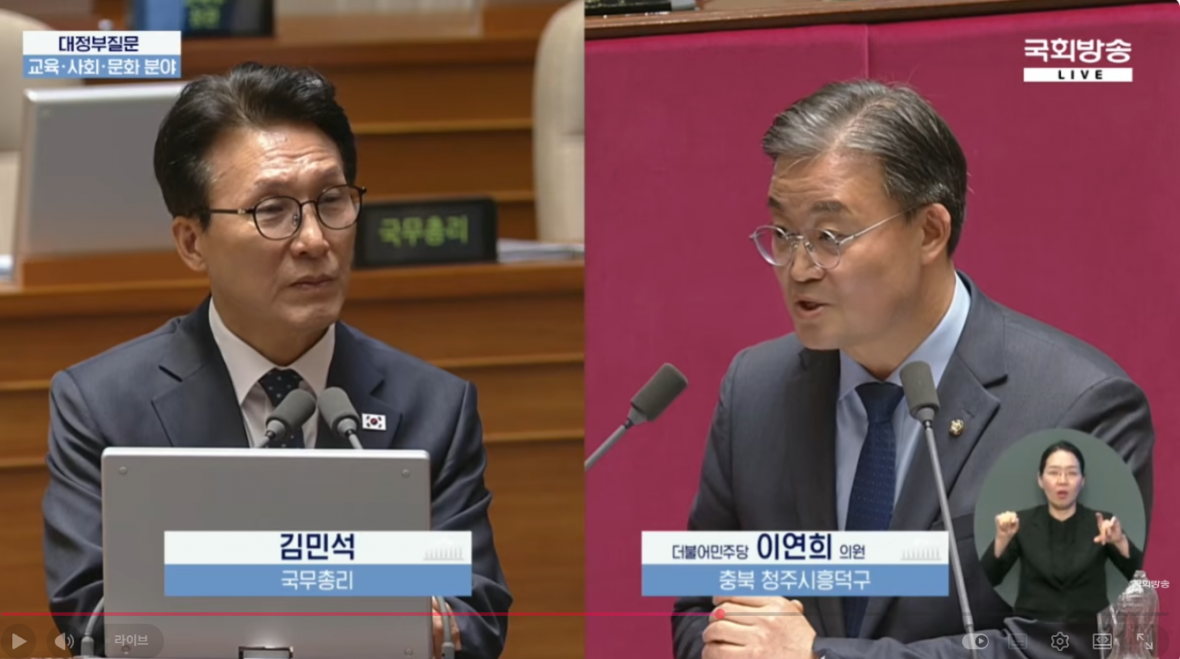 민주당 이연희 국회의원이 11일 김민석 국무총리를 대상으로 대정부질문을 하고 있다./국회방송