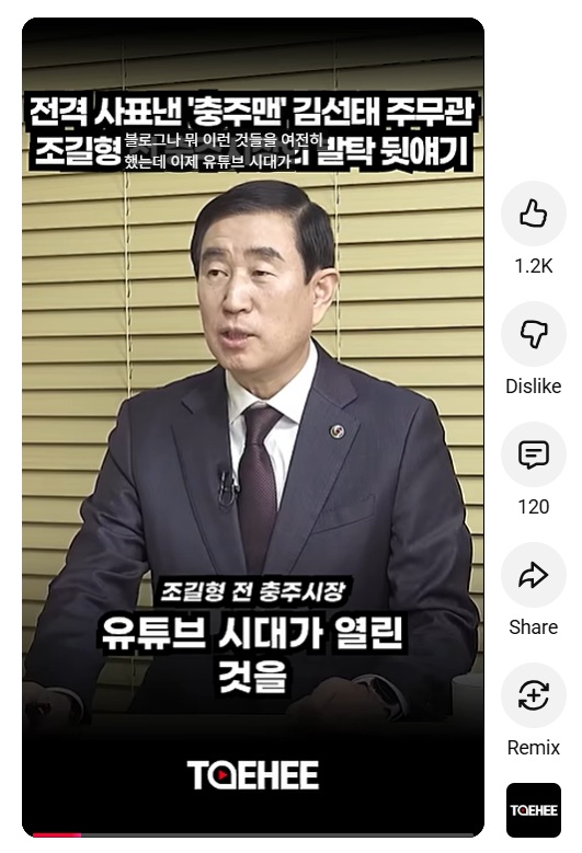 김선태 발탁 조길형 쇼츠도 ‘14만뷰’