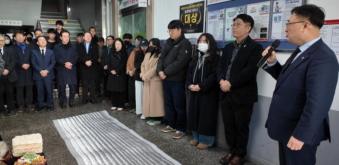 이광희 의원은 “국정조사도 하고 정부가 바뀌어서 설 합동차례를 이런 1층 통로에서 여전히 지내야 한다는 사실이 너무 참담하고 속이 상한다”며 “충북도와 청주시가 이런 식으로 참사를 대하는 태도에 굉장히 큰 모욕감을 느낀다”고 말했습니다.