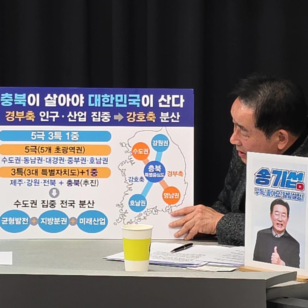 '충북특별중심도'를 가장 먼저 주장했던 송기섭 전 진천군수도 자신의 페이스북에 충북특별자치도법의 완성을 최우선으로 추진하겠다고 밝혔습니다.