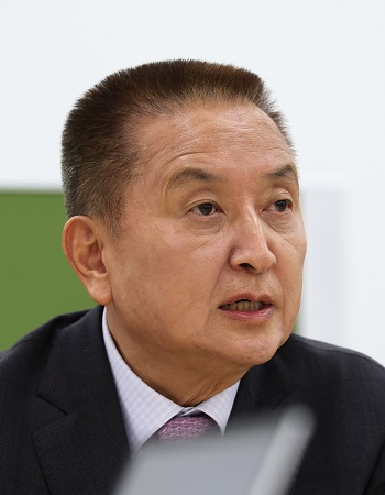 김현기 의장이 불출마 입장을 밝힌 후 기자들의 질문을 듣고 있다./미디어태희