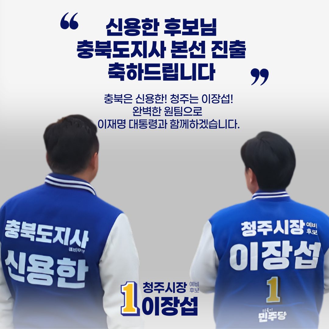 이 예비후보는 “충북과 청주가 완벽한 '원팀'이 되어 뛴다”며 “신용한의 충북, 이장섭의 청주가 함께 만들어갈 눈부신 내일은 민주당의 압도적 승리이자, 이재명 정부의 성공을 향한 굳건한 디딤돌”이라고 밝혔습니다.