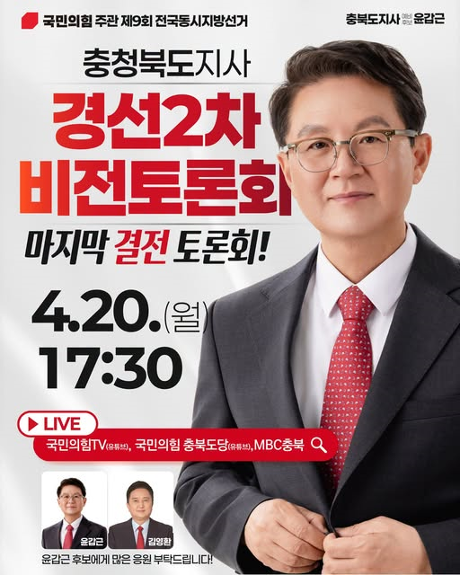 한편, 국민의 충북지사 본경선을 앞두고 김영환 충북지사와 윤갑근 변호사의 토론이 이날 오후 5시 30분부터 MBC충북 등을 통해 생방송됩니다.